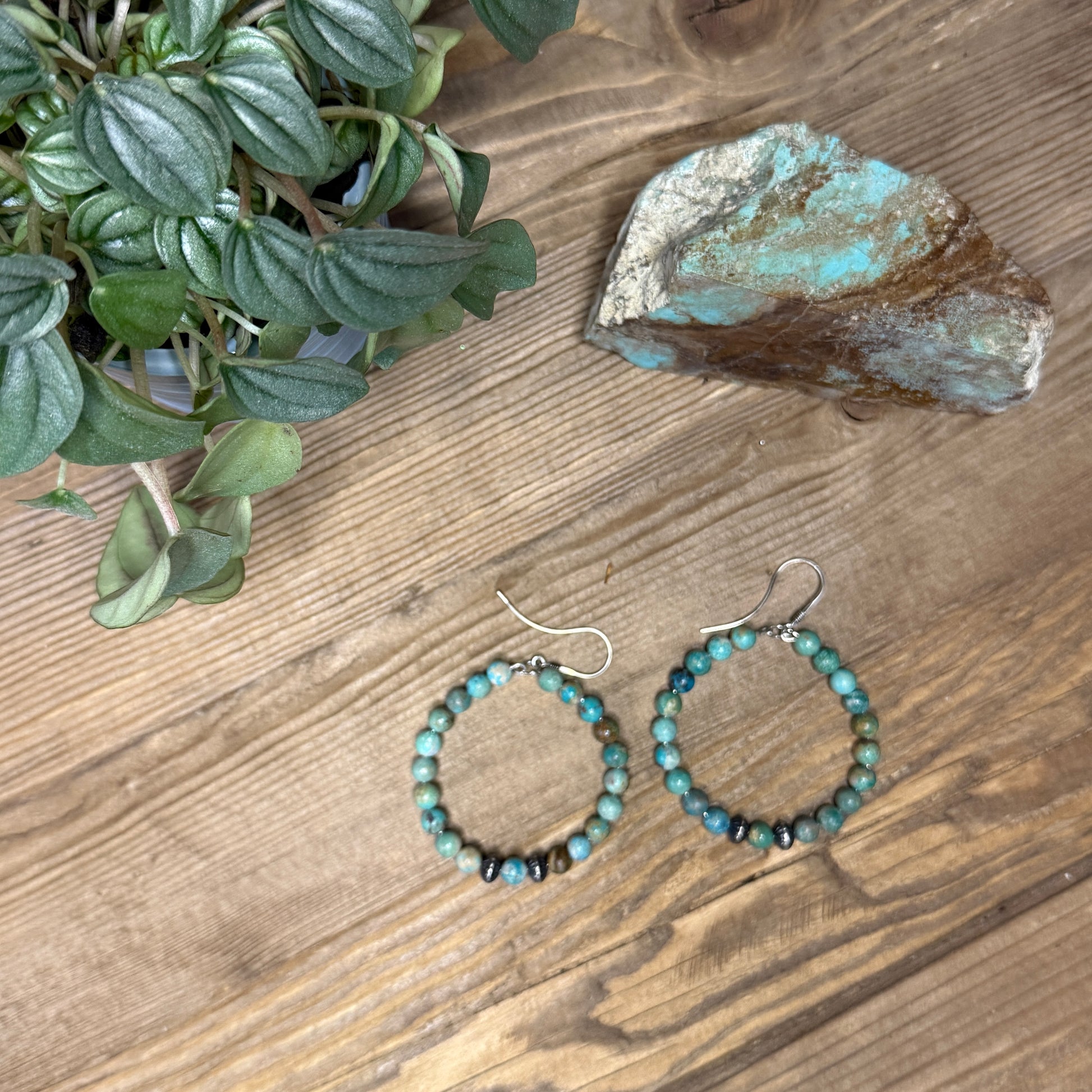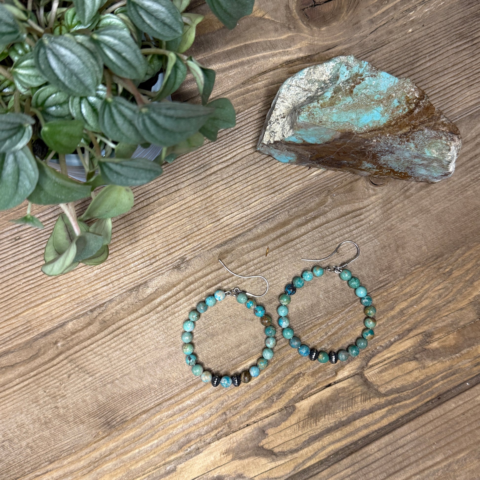 Earthy Campitos Turquoise Bead Hoop Earrings